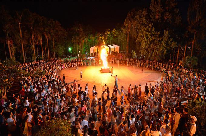 看演出,看篝火晚會,放水燈