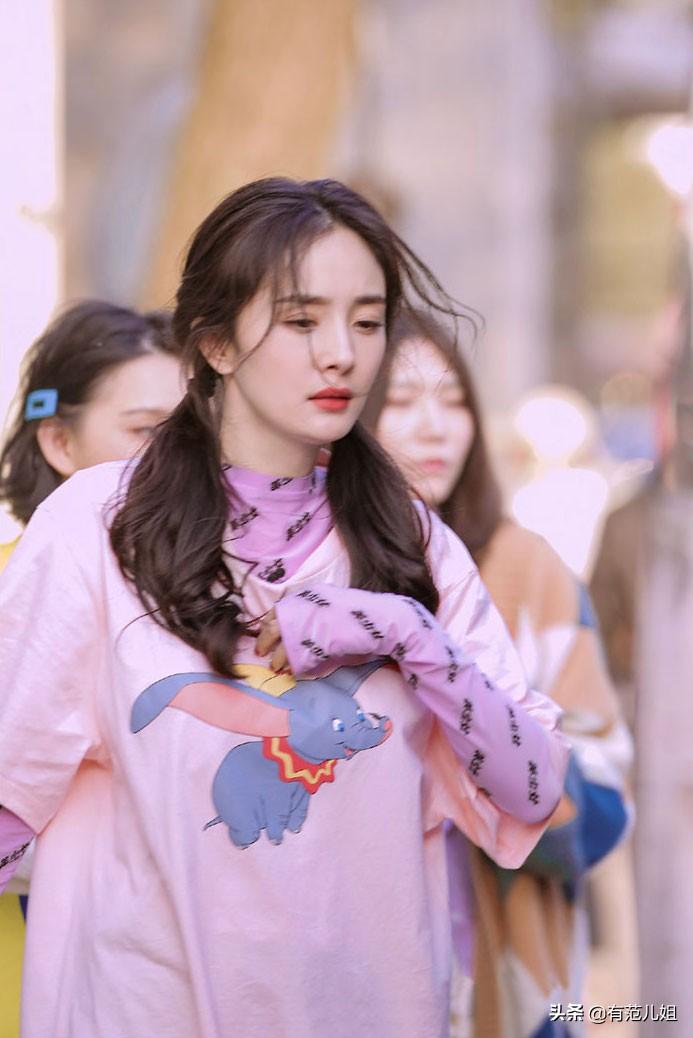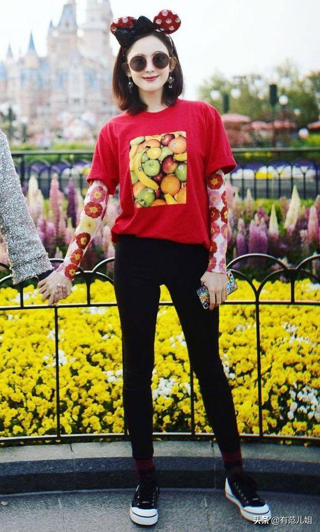 楊冪不愧是帶貨女王,前陣子她的小飛象T恤搭配粉色防曬衣就登上了熱搜,而這件防曬衣看單看有點花俏難看,但是作為內(nèi)搭就會顯得很有時尚感了。搭配小黑褲,又簡單又帥氣。