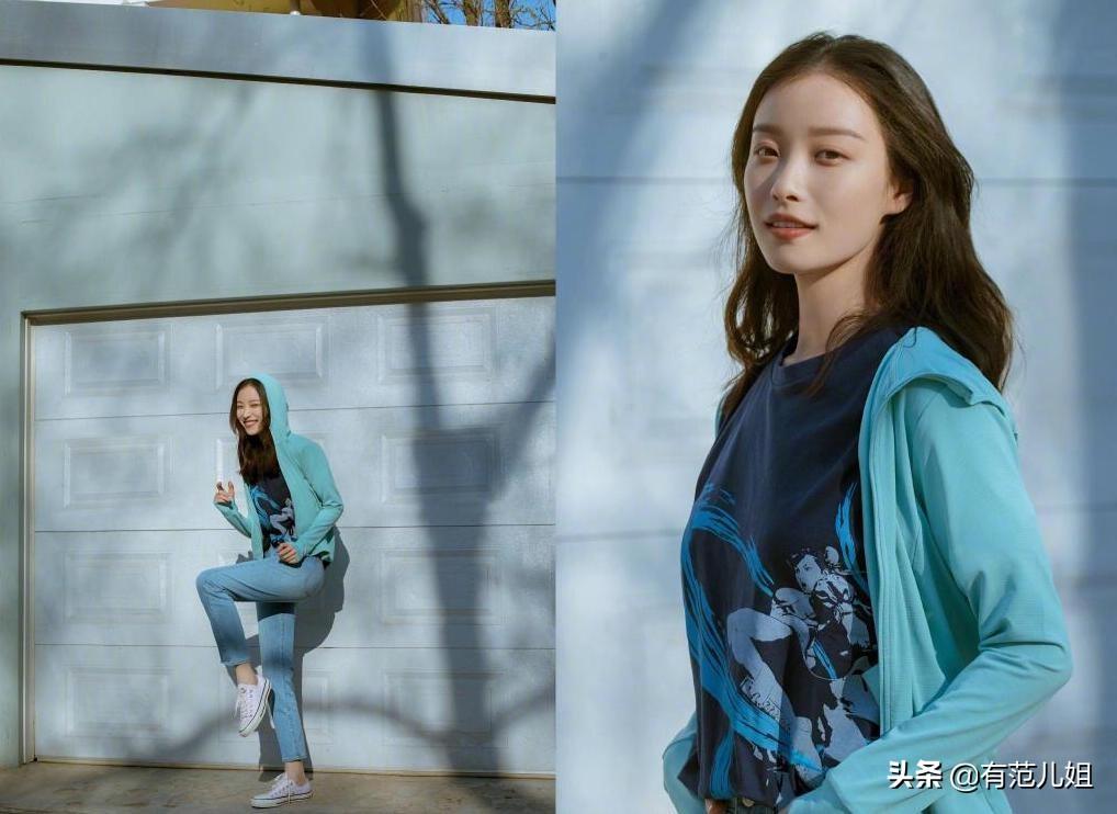 除了這種傳統(tǒng)的之外,也可以像喬欣一樣選擇開衫式的防曬衣,透明色的防曬衣看起來造型感的不錯,而且給人感覺比較潮,搭配起白色的打底或者說工裝褲也會頗為小個性。
