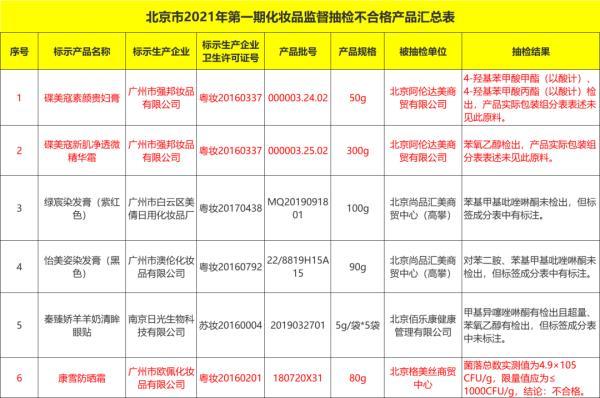 日前,北京市藥品監(jiān)督管理局發(fā)布2021開年首期不合格化妝品公告,6批次產(chǎn)品上“黑榜”。