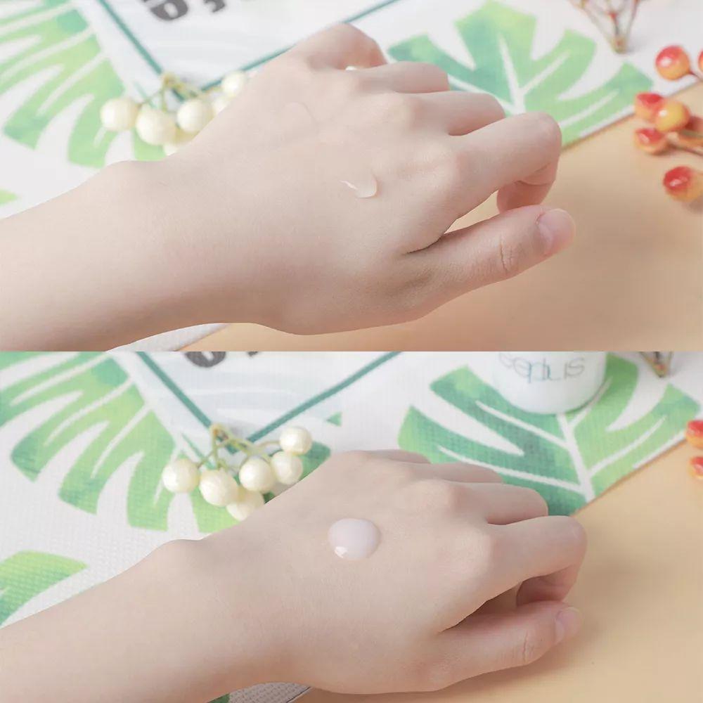 乳霜質(zhì)地像乳酪一樣炒雞好推開(kāi),糊在臉上就ok啦,吸收很快很快,上臉即成膜,微微滋潤(rùn)的感覺(jué)剛剛好,這個(gè)季節(jié)任何膚質(zhì)都可以吼住~