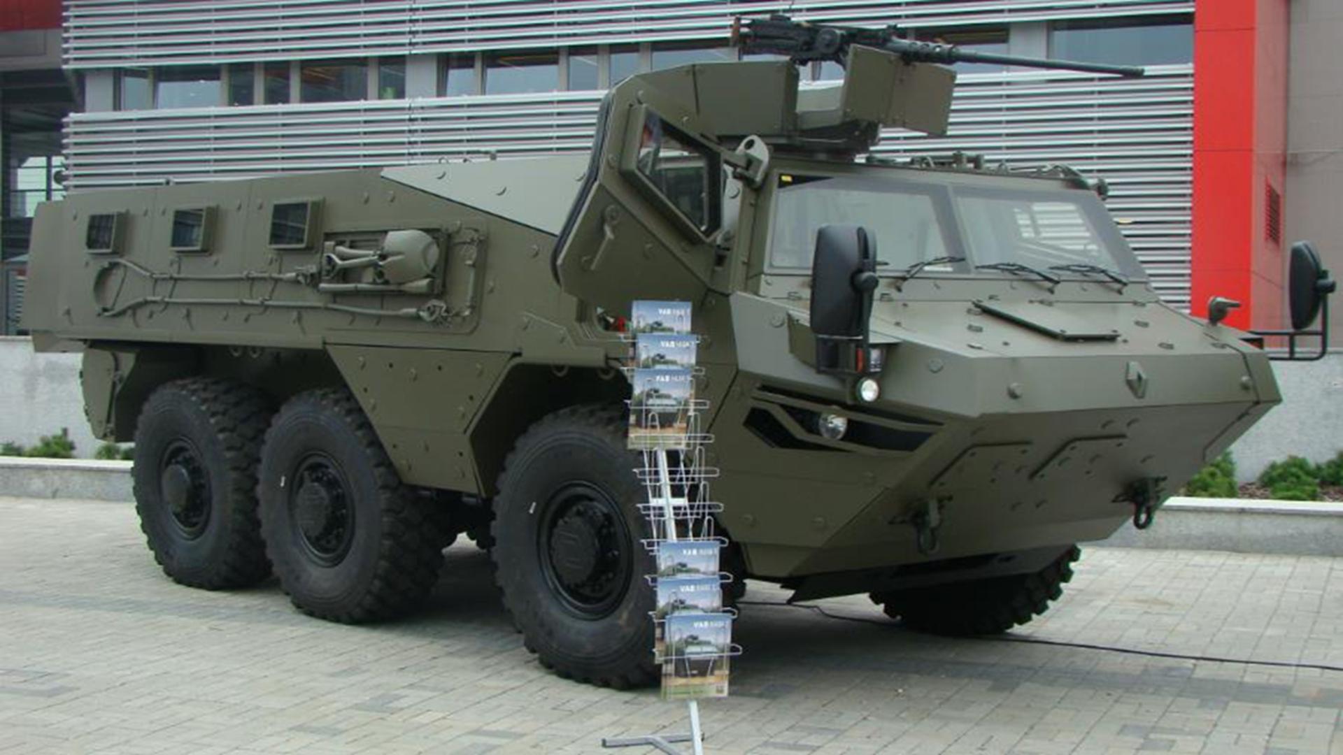 接到命令后,法國兩家知名軍工企業(yè)——潘哈德公司和雷諾公司紛紛推出了自己的樣車,終雷諾公司技高一籌,在當(dāng)年5月成為了新輪式裝甲車的制造廠商。之后新裝甲車開始陸續(xù)量產(chǎn)出來,其名稱被稱為"VAB",是法語"裝甲先鋒戰(zhàn)車"的簡寫(法語: Véhicule de l'Avant Blindé)。