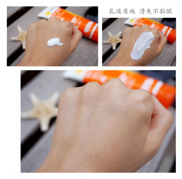 防曬霜的質地不是霜,而是很水感的乳液質地,很好推開,輕輕按摩幾下很容易就被肌膚吸收了,并且使用后的肌膚一點也不泛白泛油光,健康透亮很清爽水潤的感覺,很喜歡這種質地的防曬。