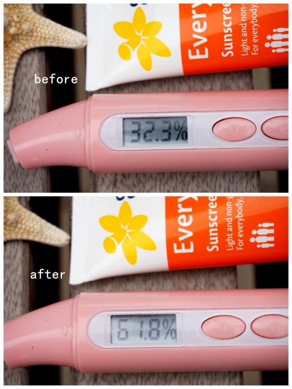 不管什么季節(jié),護膚品都必須要有足夠的滋潤度,只有當肌膚擁有足夠的水潤度,才能讓后續(xù)的吸收果更好。使用前肌膚水分值32.3%,肌膚呈現干燥缺水的狀態(tài),使用后水分值飆升到61.8%,補水能力相當不錯不錯。