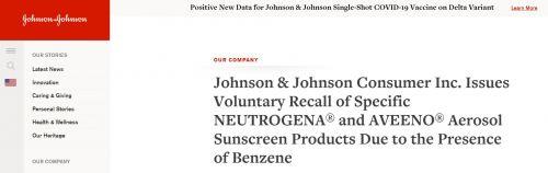 強生公司表示,苯并不屬于其防曬產(chǎn)品中的成分,正在調(diào)查此問題的原因,呼吁消費者應停止使用這些產(chǎn)品并丟棄。