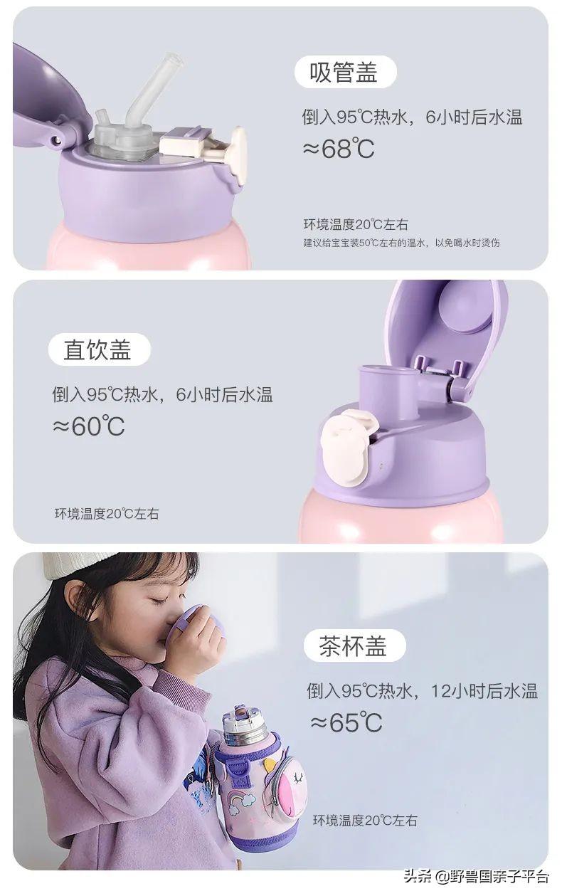 直飲蓋,適合大齡孩子,就像直接喝礦泉水瓶子一樣,出水量大,可以讓孩子多喝水,另外,小齡寶寶的媽媽帶出門沖泡奶粉、米糊什么的也是可以。