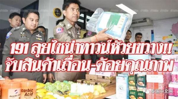 8月23日,泰國警方突擊檢查了曼谷輝煌區(qū)“代購街”中的7家特產(chǎn)店,發(fā)現(xiàn)并繳獲了一大批違法商品,其中包含假冒偽劣和逃稅漏稅的商品,包括181種食品、20種藥品、89種保健品、19個乳膠枕和3412件化妝品,價值超過100萬泰銖(約20萬元人民幣)。據(jù)泰國警方透露,這些假冒偽劣產(chǎn)品主要是賣給赴泰旅游的中國游客。這些特產(chǎn)店往往也會和旅游社或?qū)в魏献?,把產(chǎn)品銷售給外國旅游團,其中主要目標是中國旅游團。