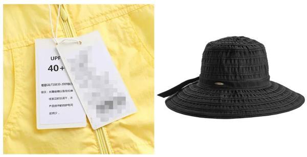 左圖為防曬衣UPF標(biāo)簽,右圖為寬檐遮陽(yáng)帽示意