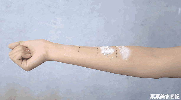 測試方法:在手臂上噴上7款噴霧后,再往皮膚上灑水。如果噴霧有防水能力,就會在皮膚表面形成一層膜,灑水時會有水珠落入荷葉的效果。