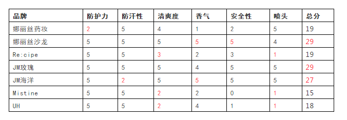 具體排名如下:JM兩款>娜麗絲院線>娜麗絲藥妝>RE:CIPE>mistine、UH