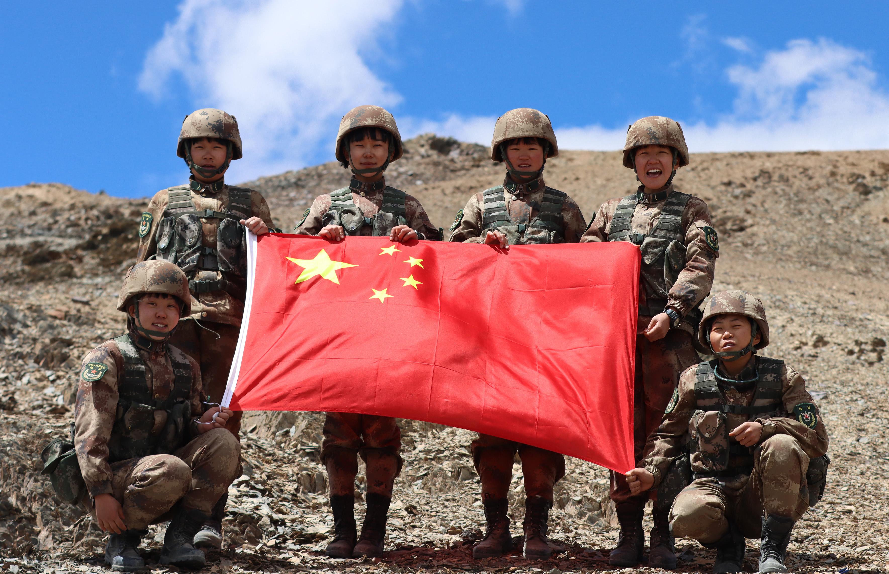 坦克女兵班在喀喇昆侖高原。 (張浩文 攝)