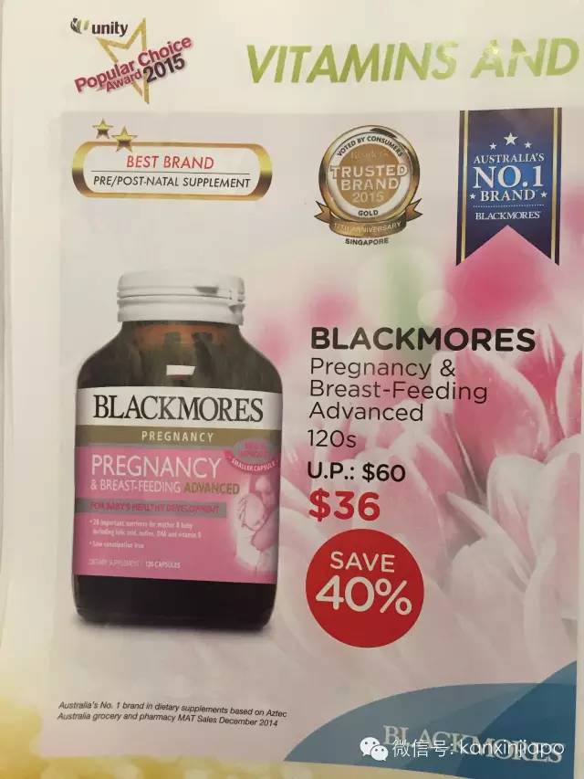 上榜折扣價:Blackmores孕期及哺乳期補充劑6折,折扣后36新幣。