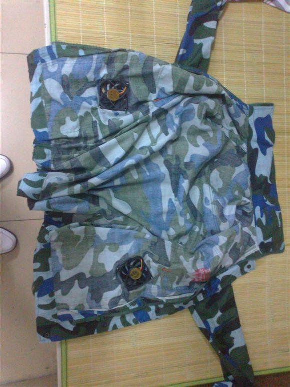 制作方法:花錢買2個無刷風扇,電腦散熱的那種。整2米網(wǎng)線,再買兩節(jié)9V電池。把軍訓服上衣口袋里面掏兩個洞(大小和風扇大小差不多)再用電線什么的東西把風扇固定在洞口(可以找個妹子幫忙縫一下)。不要搞錯方向了哈。然后把電池放上邊口袋。線埋在里面。固定好線后,電池接上。