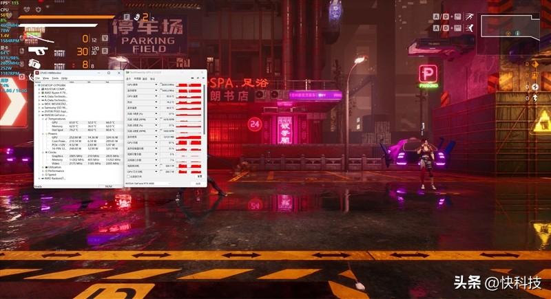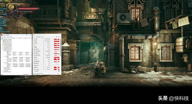 在4K分辨率下,當(dāng)前畫面的GPU頻率為2805MHz,顯存占用91%,功耗245W,溫度在59攝氏度。
