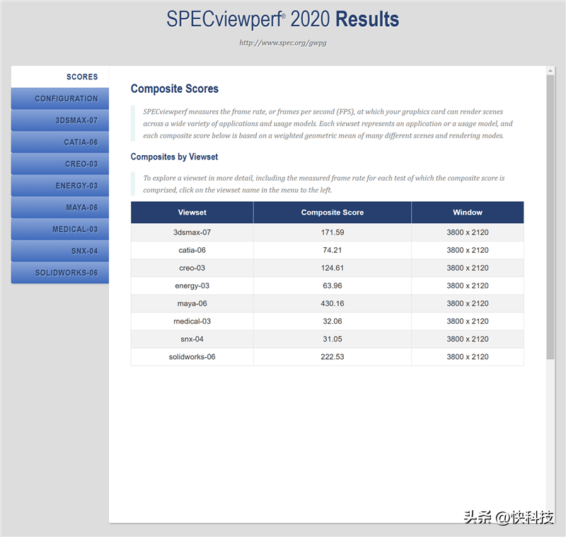 對于生產(chǎn)力,我們使用了SPECviewperf這個專業(yè)級、符合工業(yè)標(biāo)準(zhǔn)的OpenGL圖形顯示效能測試分析軟件。