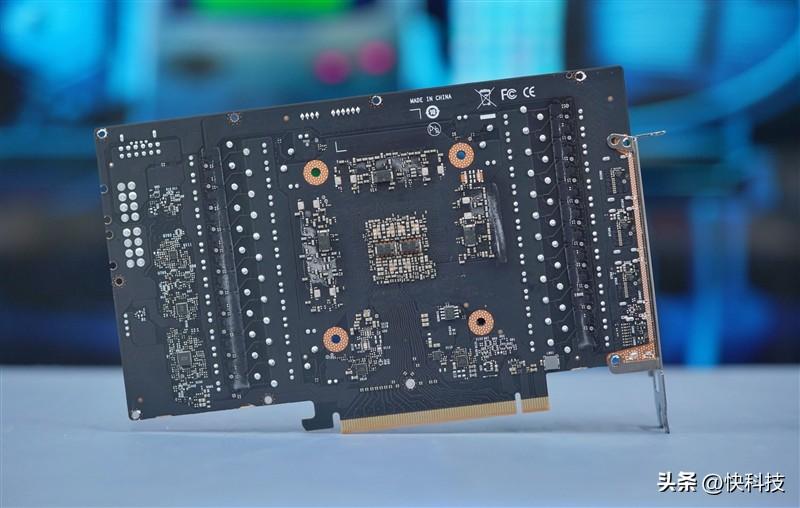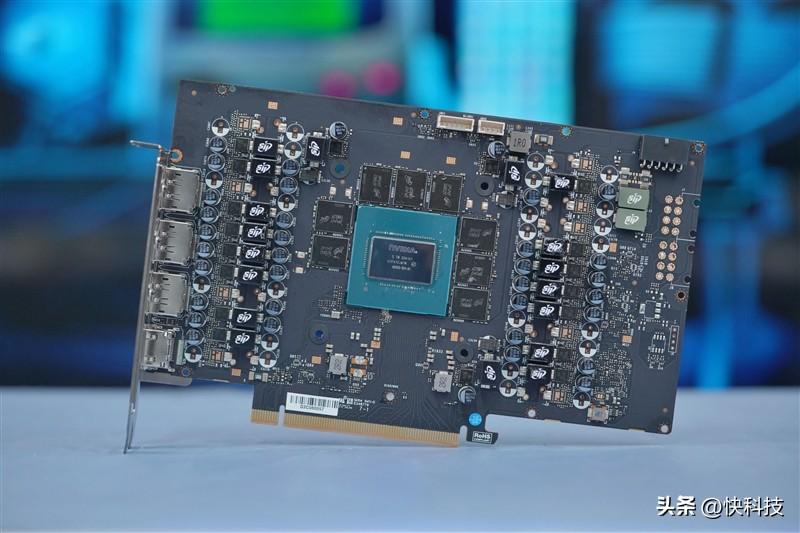 中間藍(lán)色基底就是AD103-300 GPU核心,供電方案為15相核心+3相顯存的組合。