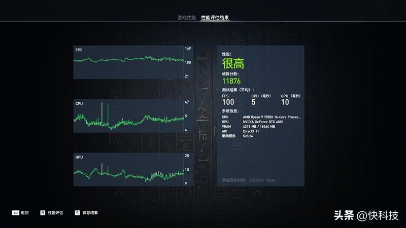 在《刺客信條:起源》4K+預(yù)設(shè)極高畫質(zhì)下,平均幀數(shù)為100 FPS。