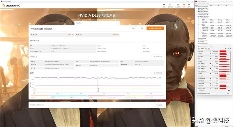 銘瑄RTX 4080璦珈顯卡在關(guān)閉DLSS時取得38.75 FPS,開啟DLSS取得132.34 FPS的成績,提升幅度約241.5%。