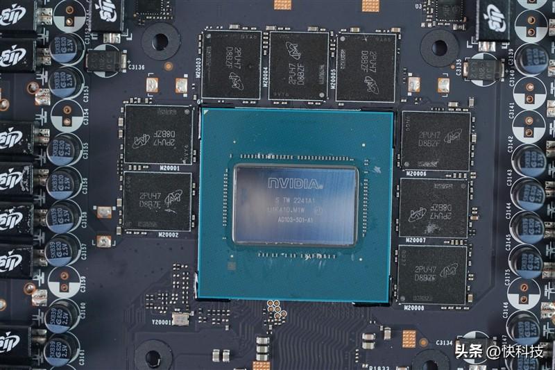 圍繞在GPU核心周邊的則是顯存,使用的是RTX 4090同款美光GDDR6X,由8顆2GB組成了16GB的容量,顯存頻率22.4Gbps。