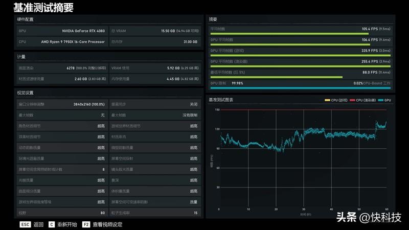 在《戰(zhàn)爭機(jī)器5》4K+預(yù)設(shè)超高畫質(zhì)下,平均幀數(shù)為105.4 FPS。