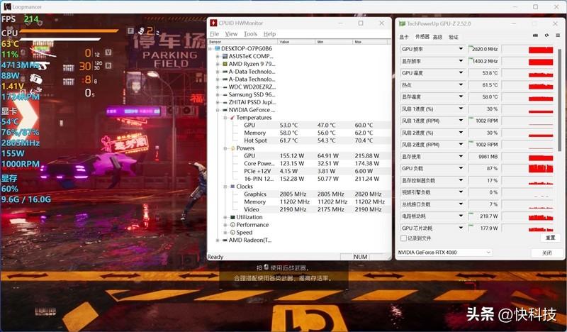《暗影火炬城》在1080P+高畫質(zhì)下,當(dāng)前畫面的GPU頻率為2805MHz,顯存占用76%,功耗155W,溫度在53攝氏度。