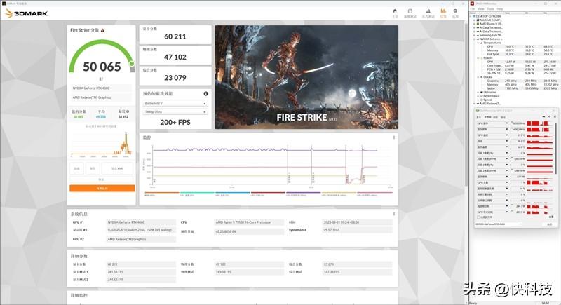 在3DMark的Fire Strike(DX11+1080P渲染分辨率)測試中,總成績?yōu)?0065,其中銘瑄RTX 4080璦珈顯卡的分?jǐn)?shù)為60211。