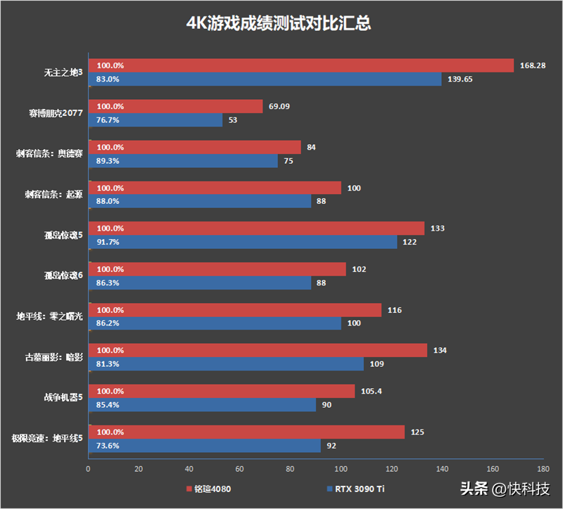 4K分辨率+高畫質(zhì)游戲?qū)崪y,它也能夠領(lǐng)先RTX 3090 Ti約18.8%。