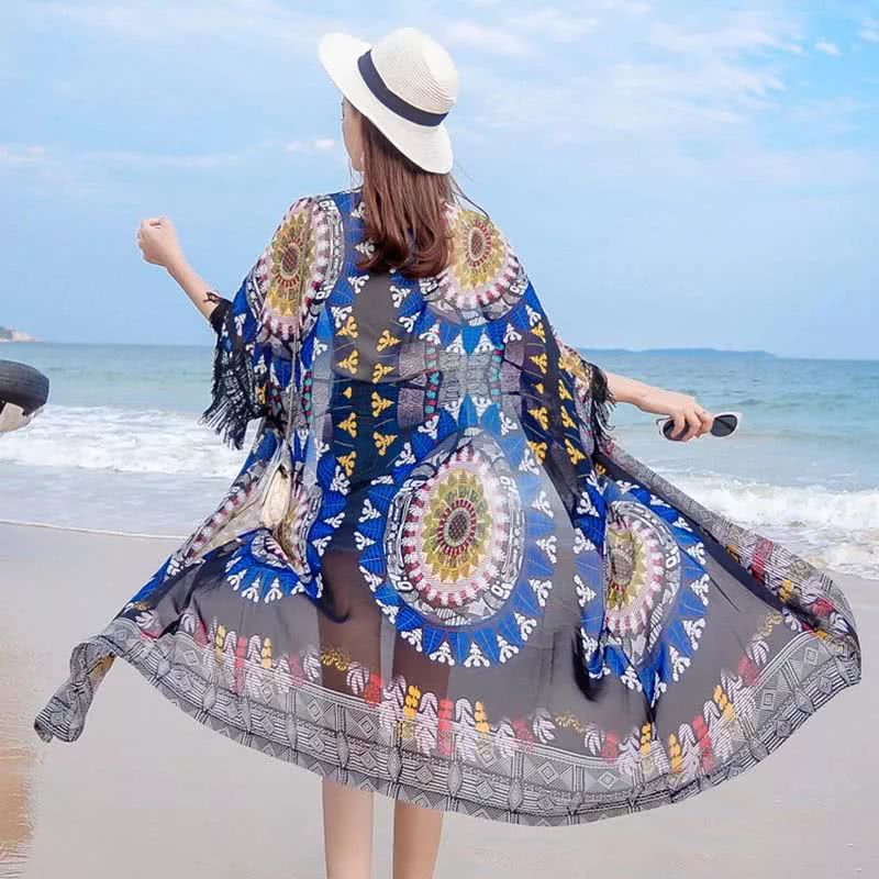 流蘇雪紡開衫女夏中長款防曬衣薄披肩