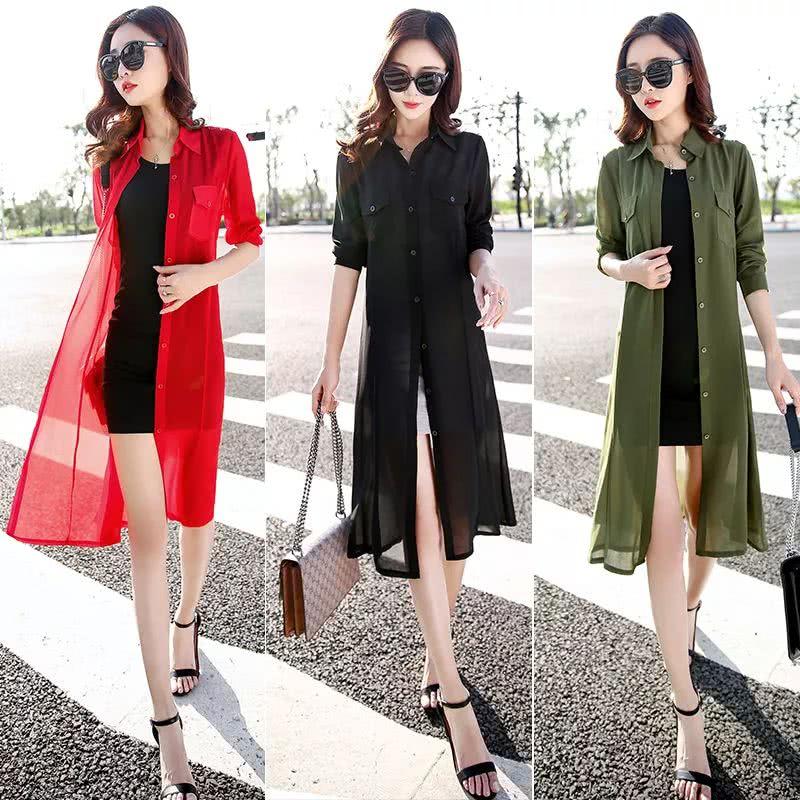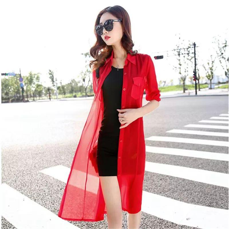 夏日中長款防曬衣女空調(diào)衫上衣薄外套