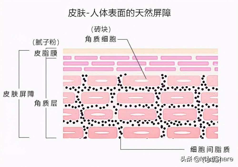 造成皮膚敏感的主要原因?前面說過,皮膚敏感的根本原因是皮膚屏障受損。從皮膚結(jié)構(gòu)來(lái)說,皮膚屏障是由皮脂膜和角質(zhì)層構(gòu)成。而角質(zhì)層包含角質(zhì)和細(xì)胞間脂質(zhì)。
