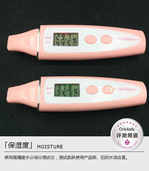 使用前肌膚含水量僅為29.7%,油分高達(dá)44.5%,水油極不平衡。使用防曬乳后肌膚快速補(bǔ)充養(yǎng)分,含水量提升至37.8%,油分有所下降。重現(xiàn)水潤健康的保濕狀態(tài),偏干的皮膚也可以放心使用。