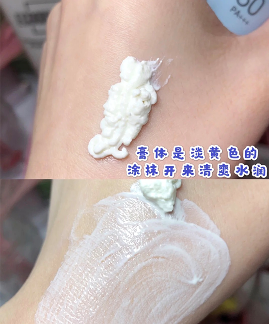 這款防曬霜分三款,粉色藍(lán)色和綠色,藍(lán)色和綠色的網(wǎng)評容易搓泥,粉色這款好評如潮,好多博主推薦~是乳霜質(zhì)地,略厚重,但很好推開,清爽不油膩,上臉成膜快,輕微泛白但不會死白。防曬值讓人安心,性價(jià)比讓人動心~油豆皮入這個(gè)妥妥的~
