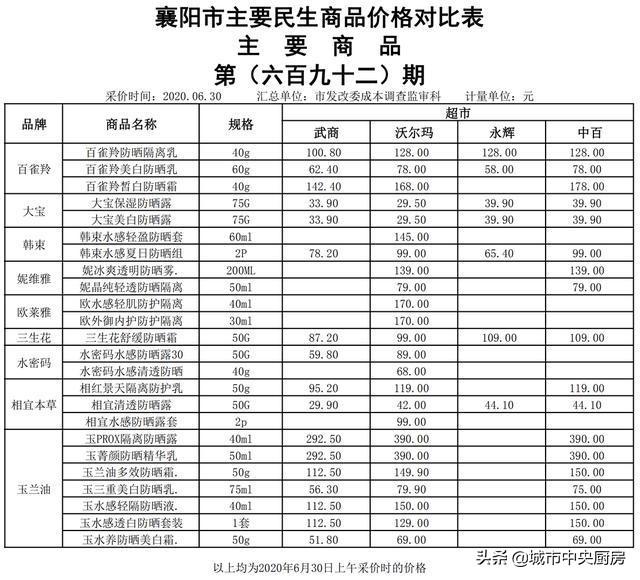 因此,2020年7月1日,本周我們對超市玉蘭油、妮維雅、百雀羚等9個品牌防曬霜價格進(jìn)行調(diào)查比對,結(jié)果發(fā)現(xiàn),除少數(shù)超市對指定產(chǎn)品做促銷活動價,其他超市大部分商品價位相對持平。