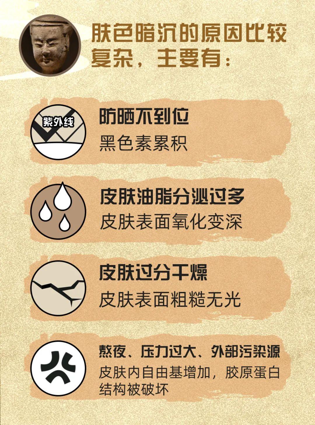 這種種因素疊加的后果,可能就是——臉會越變越黃、越變越黑、暗沉無光、顯老 N 倍。