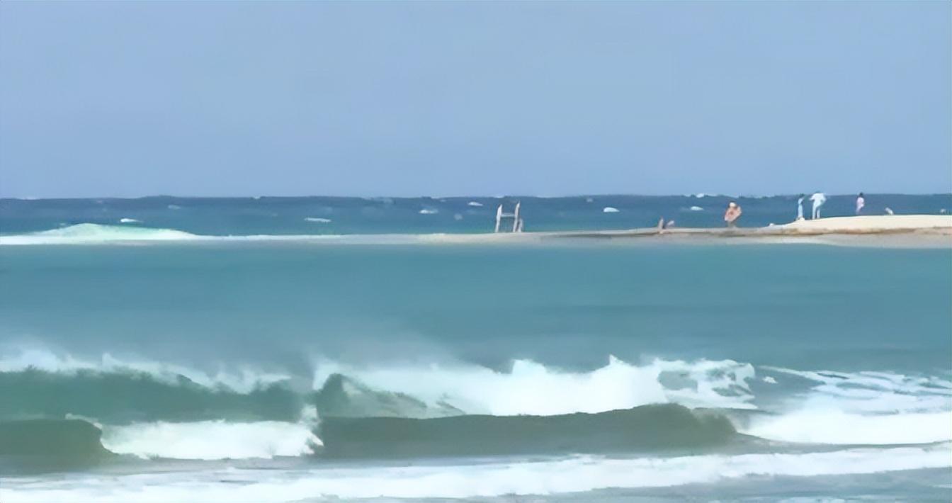 就在他們游到大海深處時,一個巨浪襲來,他和另外兩個朋友招架不住,眼看要被卷走。