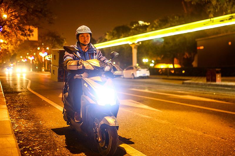 不少外賣騎手喜歡接晚上的訂單,因為晚上9點以后路面上車輛少,且配送費用更高。