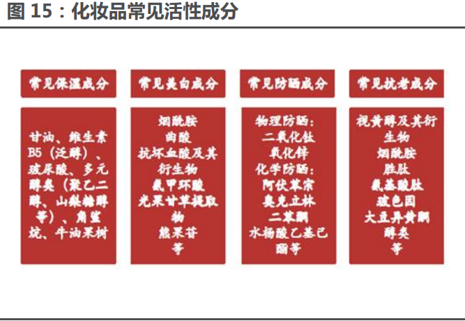 2 析行業(yè):消費(fèi)升級(jí)帶動(dòng)防曬需求高增,合成香料空間廣闊2.1 化妝品活性成分:消費(fèi)終端高度景氣+品類升級(jí)+新規(guī)落地,前景可期