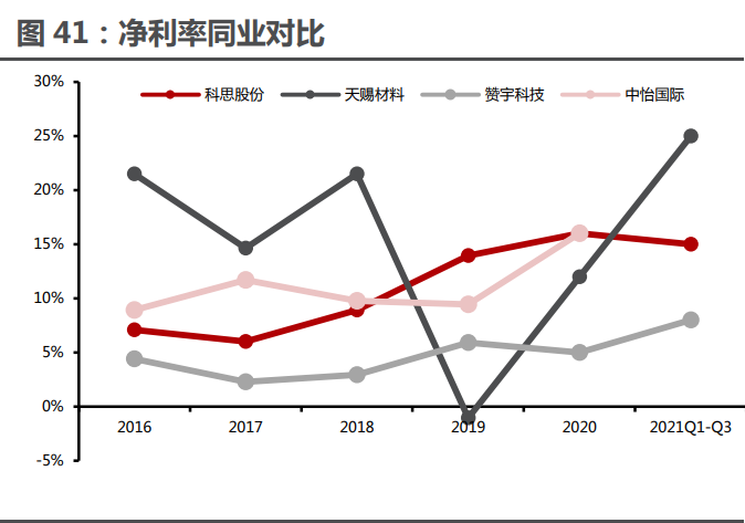 4 理邏輯:黑暗時(shí)刻已過(guò),量?jī)r(jià)齊升+新品類、新產(chǎn)能投產(chǎn)在即短期反轉(zhuǎn):黑暗時(shí)刻已過(guò),業(yè)績(jī)階段性拐點(diǎn)來(lái)臨。2021Q3 單季,科思實(shí)現(xiàn)收入 2.35 億元 /+21.53%,凈利潤(rùn) 0.25 億元/+0.48%,收入端在受疫情負(fù)面影響連續(xù) 4 個(gè)季度負(fù)增長(zhǎng)后,首 次轉(zhuǎn)正,意味著下游消費(fèi)需求已有所恢復(fù),利潤(rùn)增速低于收入增速主要系上游大宗商品原材料和 海運(yùn)價(jià)格上漲沖擊所致,2021Q3 單季度毛利率為 23.77%,創(chuàng)近年新低。根據(jù)公告,公司已于 10 月底開始通過(guò)上調(diào)產(chǎn)品價(jià)格的手段傳導(dǎo)成本壓力,預(yù)計(jì)從 21Q4 開始恢復(fù)毛利率水平開始逐 步恢復(fù),22Q1 可以恢復(fù)至 30%-35%的水平。