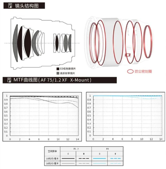 唯卓仕 AF 75mm F1.2 XF 采用日本進(jìn)口 HOYA 特殊硝材,采用 11 組 16 片光學(xué)結(jié)構(gòu),4 枚高折射率鏡片和 3 枚 ED(低色散)鏡片,有減少影像邊緣可能出現(xiàn)紫邊的情況,實(shí)現(xiàn)媲美 APO 級的色散矯正。此外,鏡頭還采用了高清納米多層鍍膜技術(shù),有減少入射光產(chǎn)生的眩光和鬼影,獲得清晰銳利的影像。