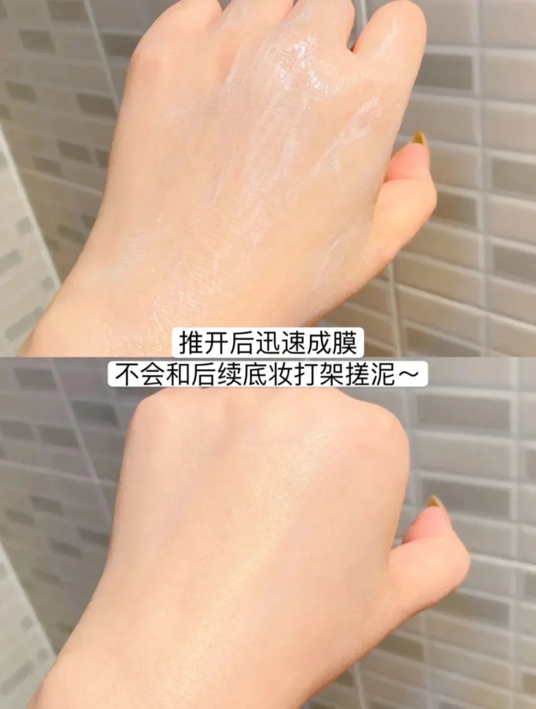 首先,質(zhì)地上,擠出來的時候雖然看著像是乳液的感覺,但還是很好推開的,而且成膜比較快,成膜后也沒有的一層膜在臉上的感覺,整體的使用感我覺得是不錯的。