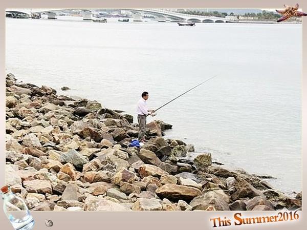 飯店外老伯伯在釣魚