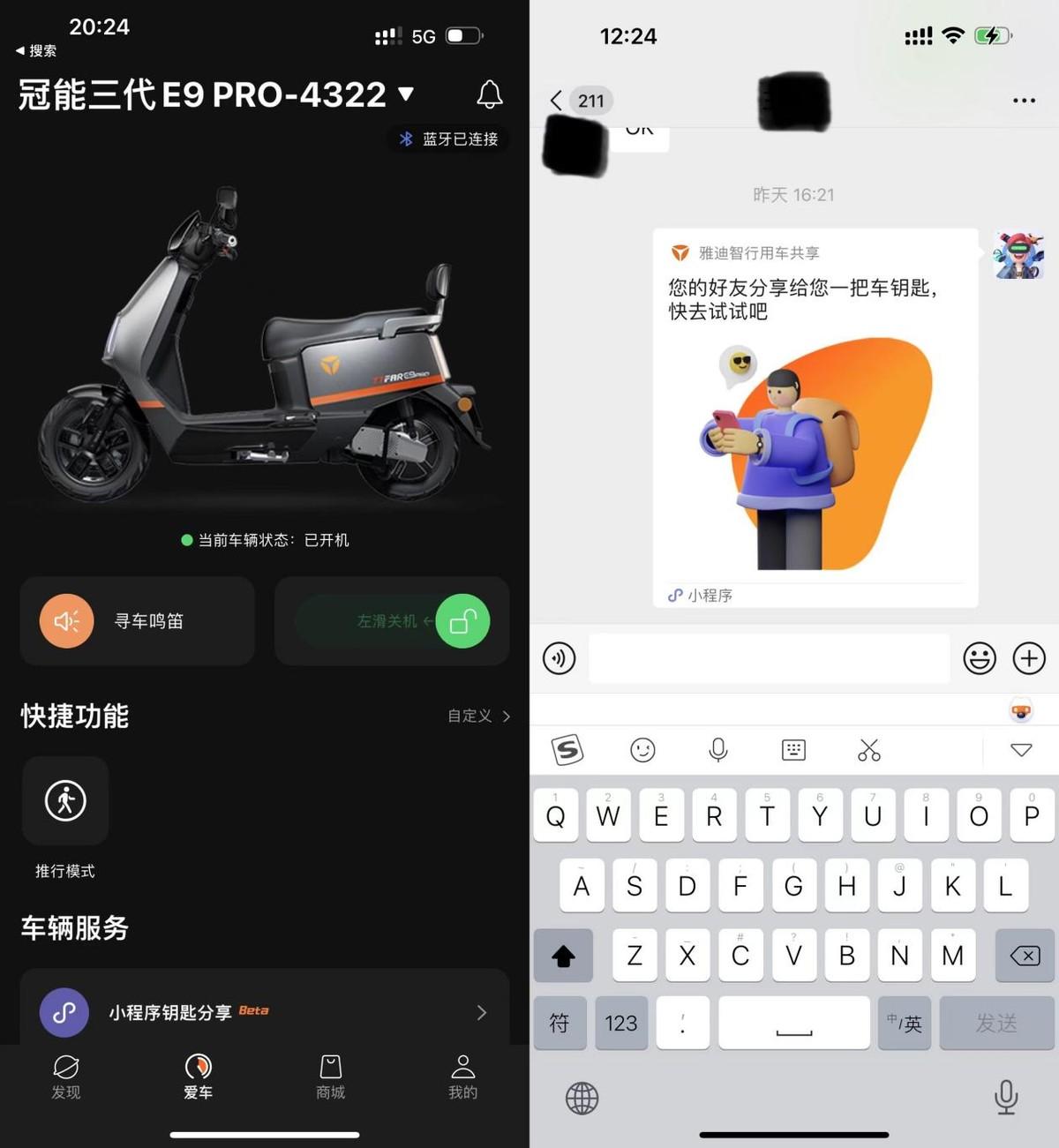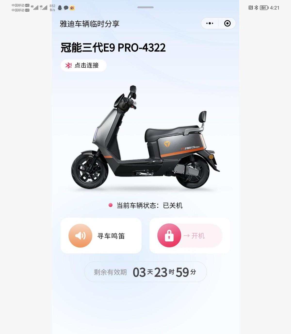 作為雅迪冠能系列的明星產(chǎn)品,智能化也是不容小覷,人車智慧互聯(lián)、手機(jī)解鎖、尋車?guó)Q笛、離車休眠……這些都是基本操作,也可以對(duì)一鍵開(kāi)機(jī),定時(shí)關(guān)機(jī)時(shí)間,車輛靈敏度等進(jìn)行設(shè)置。更重要的是,還可以通過(guò)小程序解鎖,把鑰匙通過(guò)小程序分享給你的家人朋友,不用給別人物理鑰匙,也不用費(fèi)事下載APP,這個(gè)功能必須要好評(píng)。