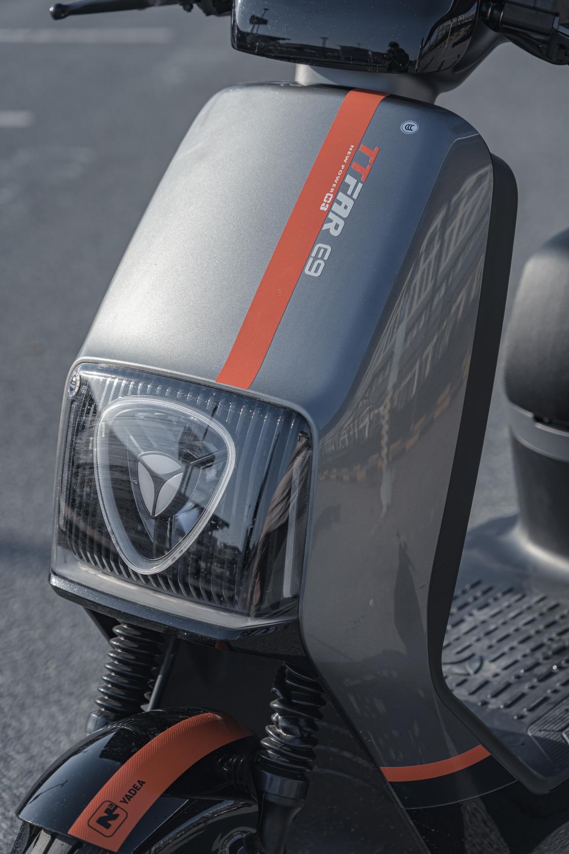 正面的大燈將雅迪自家logo嵌入了進(jìn)去,高流明的大燈顯得炯炯有神,就算是白天也看得出來(lái)很亮,晚上也無(wú)需擔(dān)心行駛。轉(zhuǎn)向燈是流光的,賦予燈光更多動(dòng)感,尾燈同樣亮度不俗,能引起后方注意,行駛。