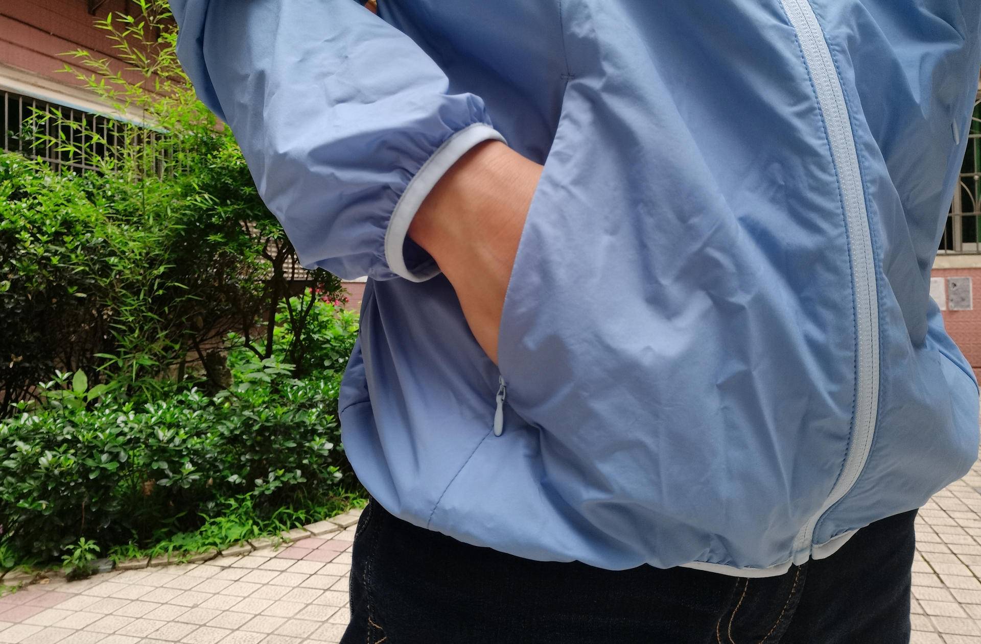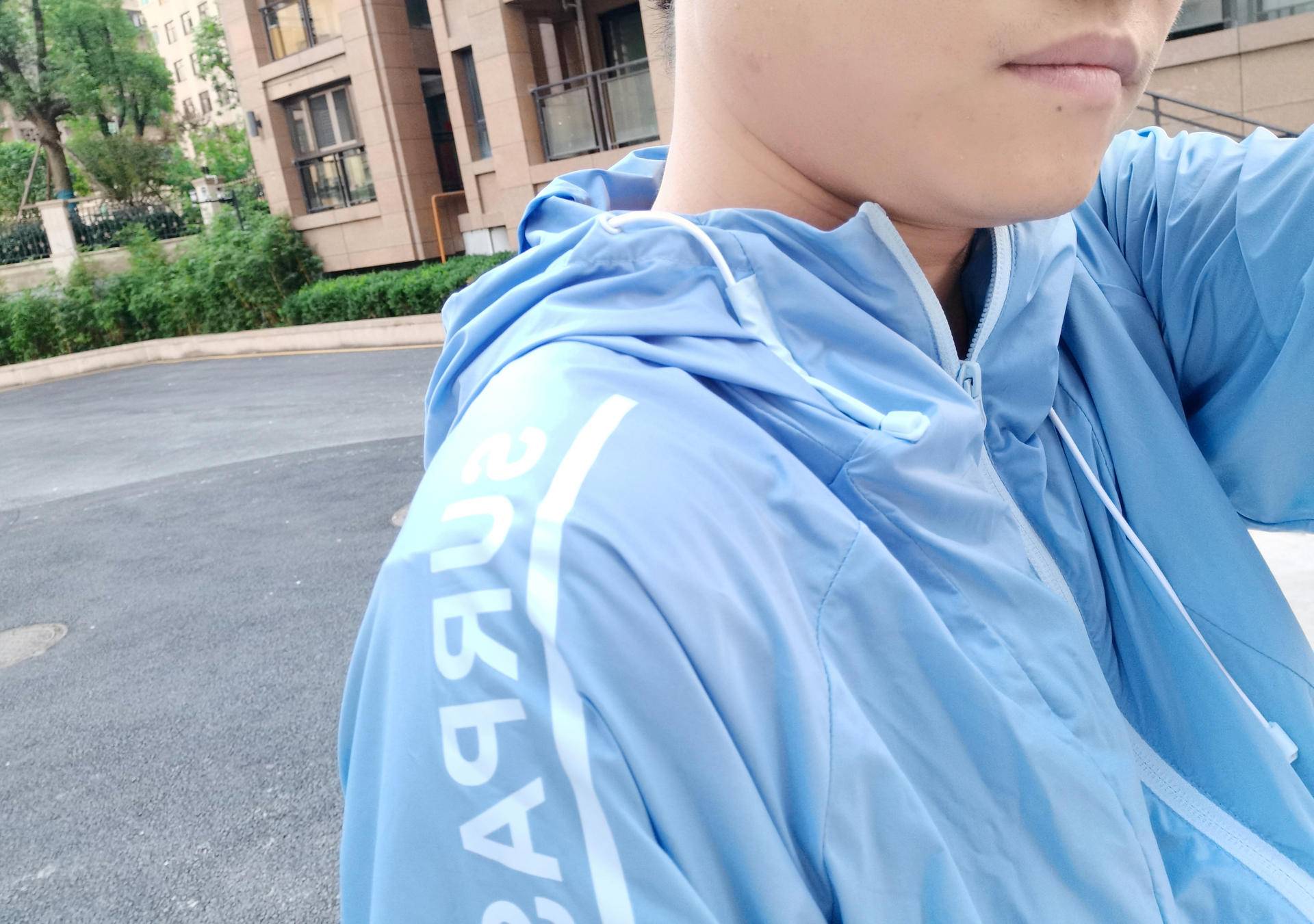 我選擇的這款早風(fēng)高指數(shù)運(yùn)動(dòng)防曬衣提供了灰色、豆沙綠、千禧粉、白色和霧藍(lán)4種顏色可選,作為一個(gè)較為古板的人,我還是入手了霧藍(lán),也是對(duì)媳婦要求穿艷一點(diǎn)的讓步了。