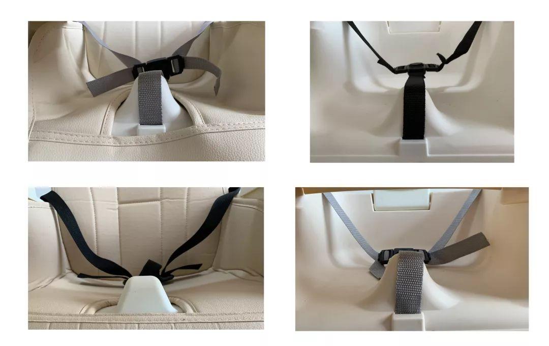 測(cè)評(píng)方法:檢查寶寶餐椅有無帶/防滑柱,并對(duì)帶/防滑柱樣式設(shè)計(jì)的性進(jìn)行評(píng)估。