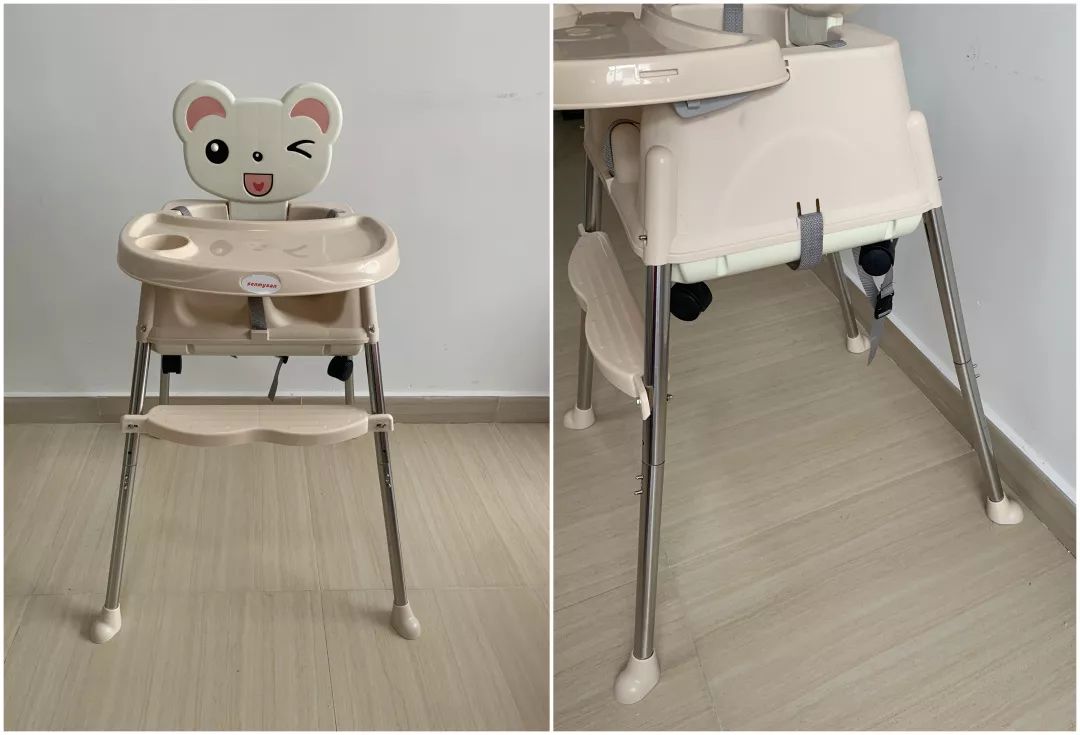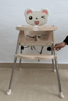 ③小主早安:座椅高度調(diào)節(jié)麻煩,需對(duì)餐椅進(jìn)行拆卸和重新安裝;餐盤調(diào)節(jié)有些卡頓;靠背/腳踏不可調(diào)節(jié);帶為一鍵式,打開需稍用力;凈重量3kg左右,搬移較輕松。