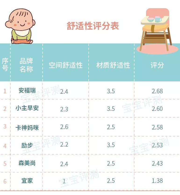 綜合以上2項(xiàng)測(cè)評(píng),6款寶寶餐椅的舒適性綜合得分如下(滿分5分):