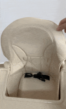 ⑥小主早安、勵(lì)步、安福瑞的靠背配有PU皮套,雖然比PP塑料材質(zhì)更舒服一點(diǎn),但皮革的味道較重,既影響用餐體驗(yàn),長(zhǎng)期接觸還可能影響寶寶的健康。