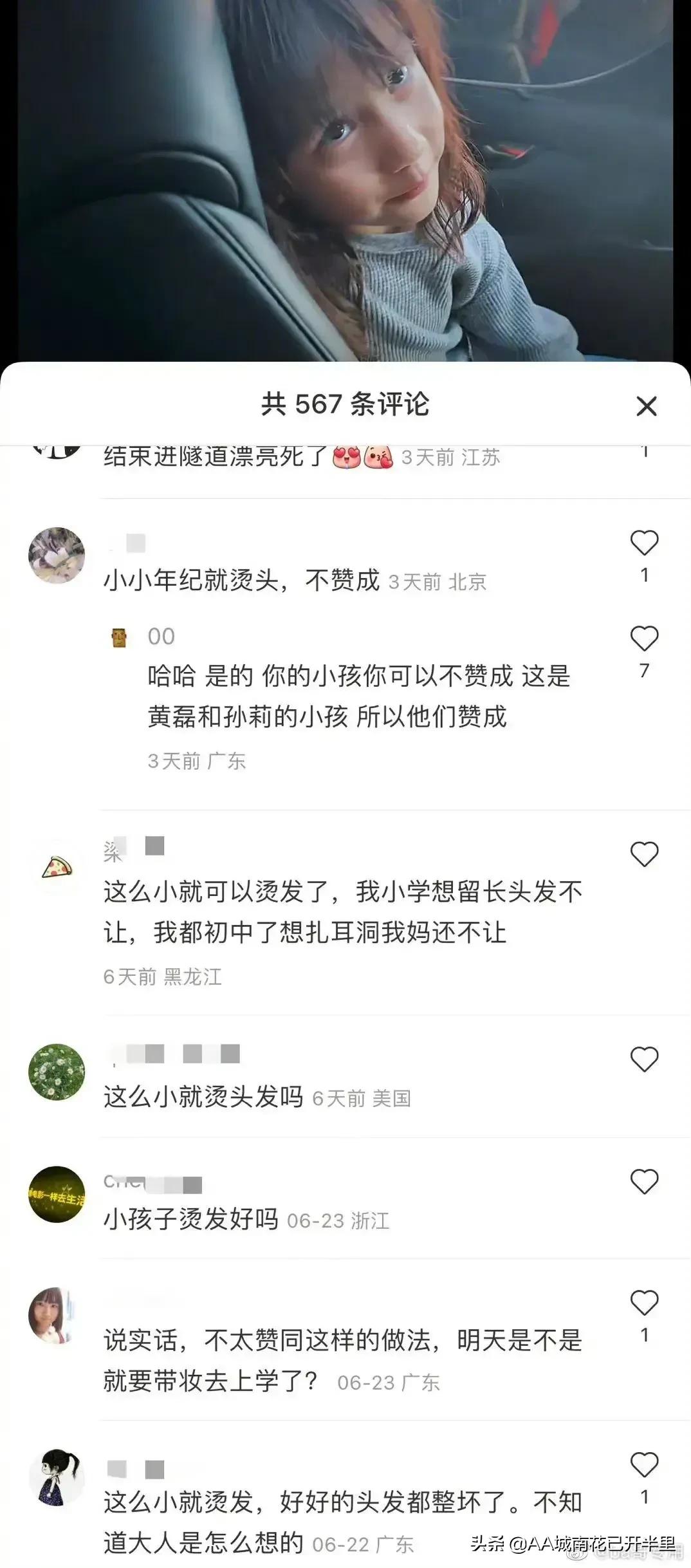 我和黃磊的觀點(diǎn)一樣,我女兒上初中的時(shí)候想要燙頭,我就領(lǐng)著去燙了,也沒老師說她,現(xiàn)在我女兒27了也沒影響什么[可愛][可愛][可愛]。同意燙發(fā),打耳洞就是與時(shí)俱進(jìn)嗎?不同意就不和睦嗎?什么道理啊。公眾人物有公眾人物的樣才行。別人家孩子想干啥隨便,自己家孩子要干啥家長得認(rèn)真斟酌一下,講清楚利弊再?zèng)Q定。因?yàn)樗麄兪敲餍菃??孩子燙個(gè)頭還值得討論!普通家庭的孩子有很多燙頭的,見個(gè)面也會(huì)夸贊,好看!愛美是人的天性,愛美之心人皆有之,我覺得黃磊思想很正??窗桑@種尊重和縱容終會(huì)害了孩子。流言蜚語總是有,孩子活在這樣的輿論下,會(huì)有什么后果?靜觀其變吧,反正我覺得一顆好苗已經(jīng)差不多毀了。本來挺喜歡多多的,現(xiàn)在愛不起來 。
