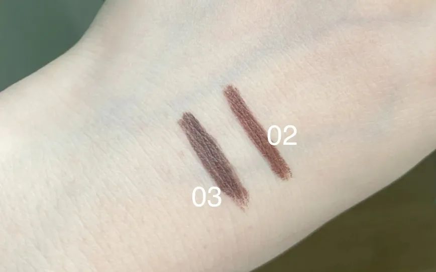 需要注意的是這款是用多少擰出來多少,因?yàn)閿Q不回去hh,每次我都是稍微擰出來一點(diǎn)點(diǎn)足夠畫就OK。新手建議03深咖色,比黑色自然溫柔,又不會過分濃郁。